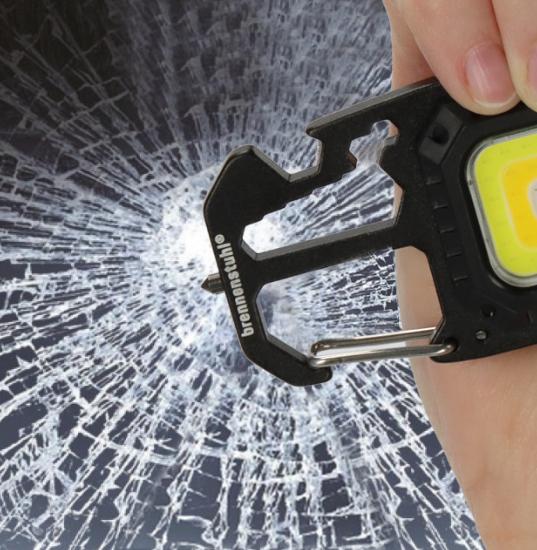 La mini lampe torche LED rechargeable MTL 600 A Brennenstuhl est un outil 6-en-1 ultra-compact et multifonction : éclairage puissant 600 lm avec 7 modes, marteau brise-vitre, décapsuleur, mousqueton, embouts tournevis et clés plates intégrées.